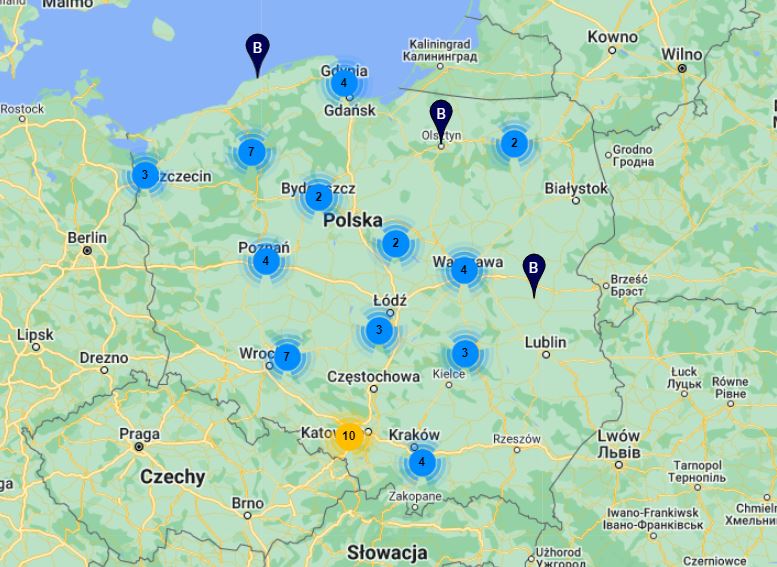 Tak natomiast prezentuje się na dzień 24 maja br. mapa ogłoszonych biegów OCR (z wyłączeniem biegów dla dzieci):