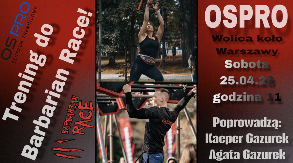 Barbarian Race rozpocznie sezon w weekend 15-17 maja 2026 roku biegiem w Ustroniu. Formą przygotowania do tego biegu może być udział w specjalnym “barbarzyńskim” treningu, który 25 kwietnia na terenie ośrodka OSPRO w Wolicy poprowadzą Agata i Kacper Gazurek.